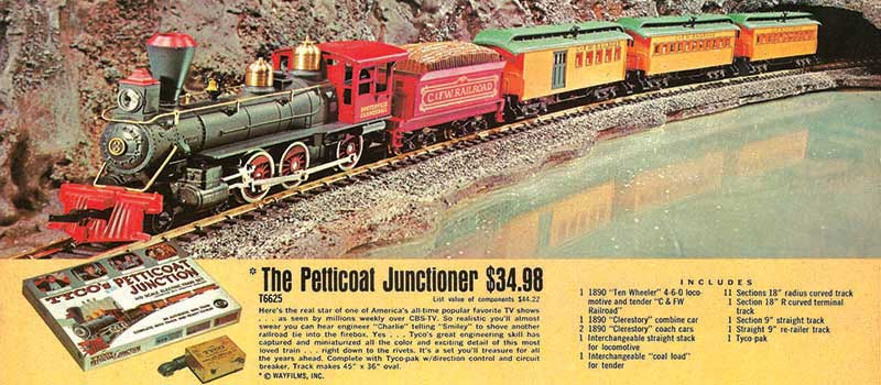 Released in 1966, this trainset really captured the spirit of the Cannonball which was often depicted in Green Acres, as well as Petticoat Junction.