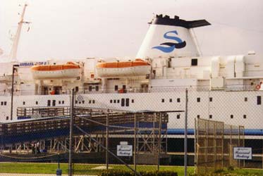whoops! SURPRISE! I did get to gamble afterall! Three miles out on this mini-ocean liner. Two stories of money winning fun. I came back with $620.00 more than I left with, and I didn't even have to kill anybody! |