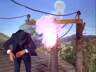 shorting out a generator every time. He climbs the pole,