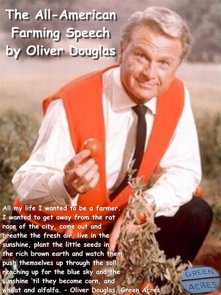 Green Acres character Oliver Douglas, played by actor Eddie Albert, was known for giving passionate speeches that resonated with the audience.