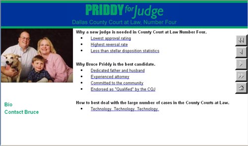 Created an Interactive CD Rom Business Card for a Democrat running for Judge in Dallas County